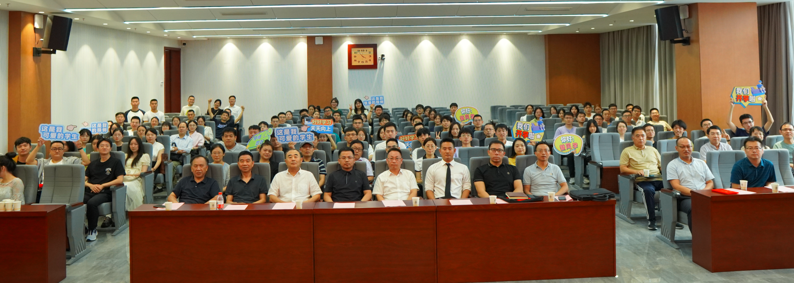 金秋九月,是一个丰收的季节,9月13日-18日,经济管理学院迎来了109名研究生新生,他们怀揣科研梦想,即将在这里开启他们的新起点、新征程和新梦想,续写经管学子的精彩故事。对于经济管理学院而言,收获了109名研究生新生,这是经管院研究生教育一次新的突破和新的开始。为了给研究生新生一次特别的导师见面会,9月18日下午,经济管理学院2023级研究生开学典礼暨导师见面会在产教楼三楼小报告厅隆重举行。典礼由副院长胡姜主持,研究生院书记李建忠、研究生督学马庆卫、二级教授杨立君、罗时军、经管院院长殷旅江、副院长李保林、鄢曹政,全体硕士生导师及2023级全体研究生新生参加了开学典礼。