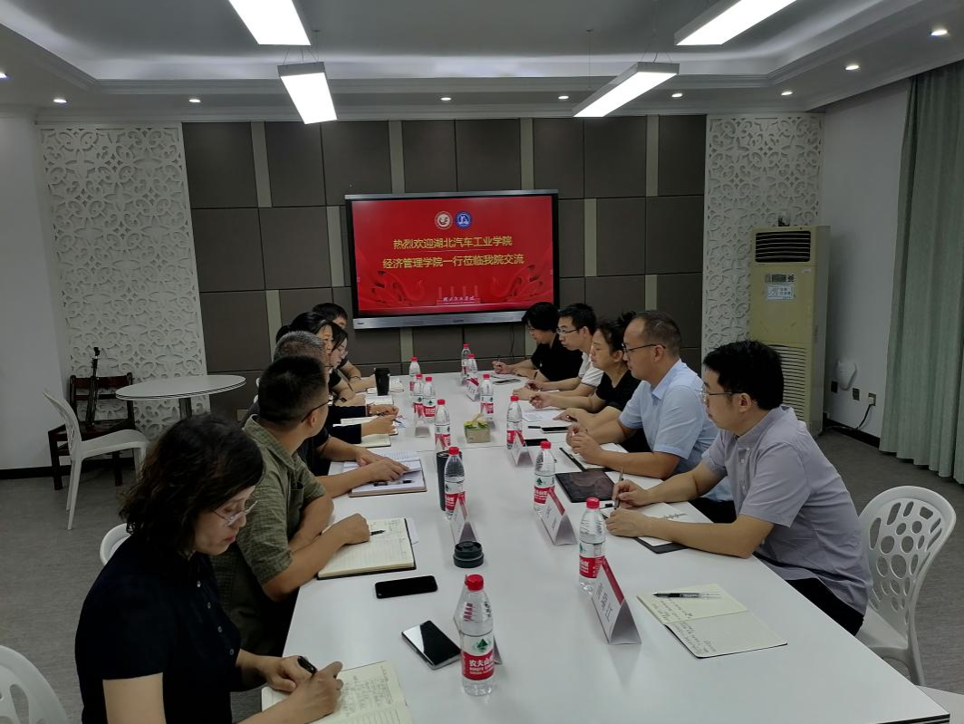 为扎实推动经济管理学院新一轮本科教育教学审核评估评建工作,9月20日上午,由经济管理学院副院长鄢曹政带队,学院工商管理系主任何波、信息管理系主任王红英、旅游管理专业负责人南瑞江、国际经济与贸易程文明博士和教学科研办主任董海燕等一行赴湖北经济学院工商管理学院,就审核评估评建工作进行专题调研。湖北经济学院工商管理学院党委书记车纯贤,副院长叶敏,各系部负责人和教学办公室相关负责出席了会议。