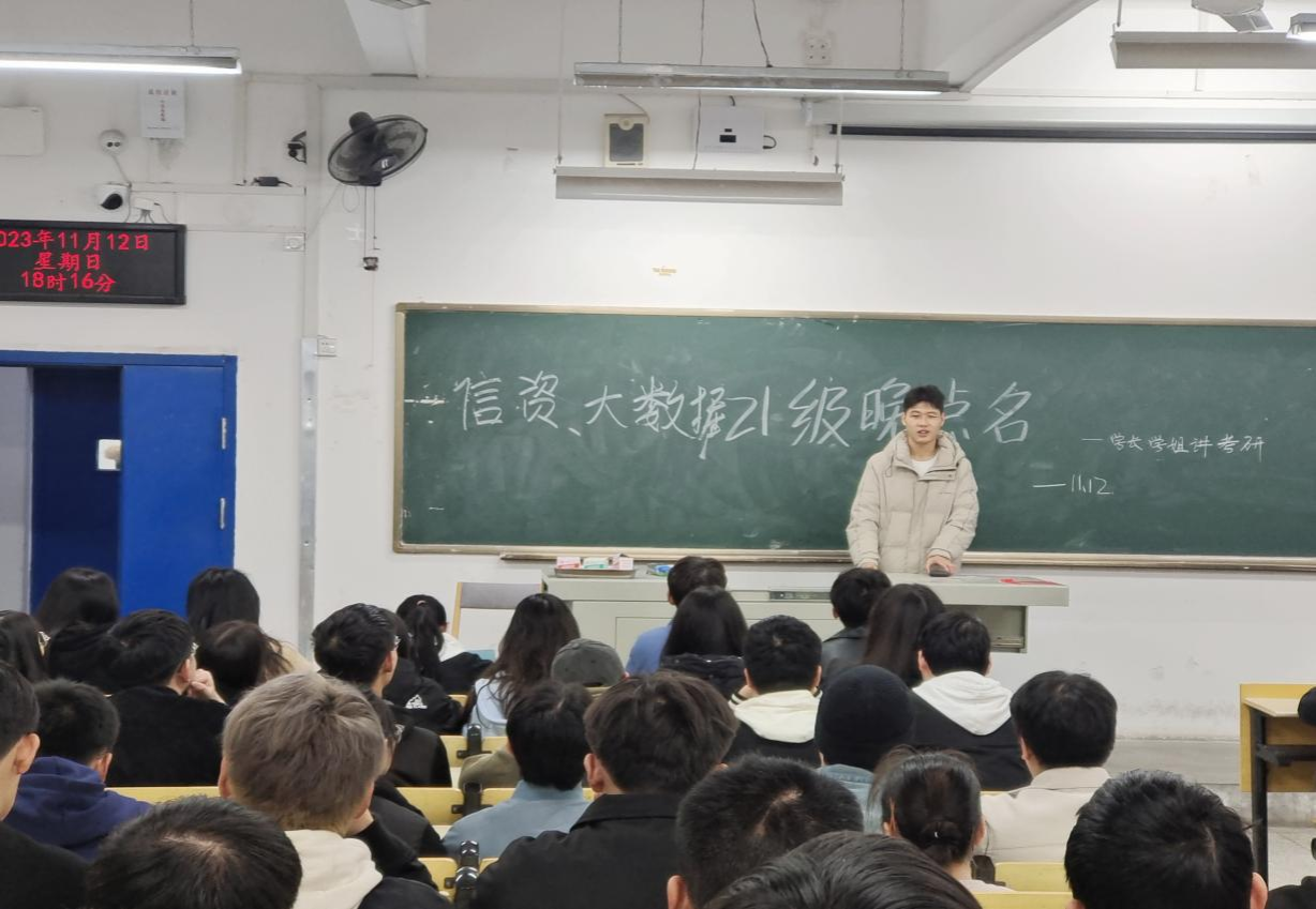 2024年全国考研报名已经结束,为全面调动经济管理学院广大学子考研积极性,营造新一轮备战考研的良好学习氛围,帮助2025届同学们了解考研形势,掌握备考方法,2023年11月12日晚,经济管理学院选派10名研究生优秀党员代表,利用周日晚自习时间,为经济管理学院大三共33个班,共计1011学生,在南校区和北校区分别开展共12场考研动员交流会,以实现2025届学生考研动员全覆盖。经济管理学院分党委副书记周丹、副院长胡姜、学工办主任张倩、分团委书记吴文斌、学工办卓安翼老师、以及部分大三班主任参加了此次活动。