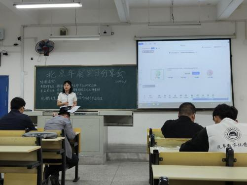 肖俊涛在总结讲话中,感谢了三位校友在百忙之中分享交流,并对同学们积极参与热烈讨论充分肯定。他提出,参观车展是本次认识实习的重头戏,同时也要认真完成参观北京汽车博物馆、参观车企生产线、参观二手车市场等多项认识实习的任务,做好实习日志、实习总结,形成高质量的实习报告。他嘱咐同学们一定要高度重视各类安全,服从统一管理,一切行动听指挥,并希望通过本次认识实习,同学们大有收获,达到认识实习的教学目标,同时扩大对学校的宣传,展示汽院学子良好的精神风貌和专业素养。