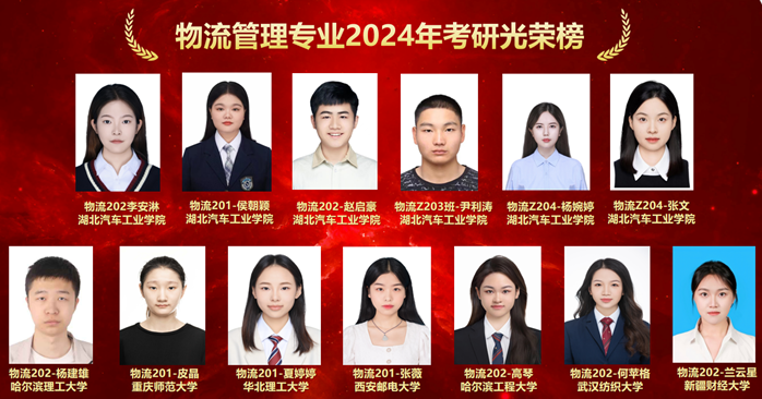 在2024年全国硕士研究生招生考试中,经济管理学院物流管理专业的13名学子展现了非凡的实力和坚韧的毅力。他们经过刻苦学习和努力拼搏,最终收获了喜人的成绩,被多所知名高校录取,包括湖北汽车工业学院、哈尔滨理工大学、哈尔滨工程大学、华北理工大学、西安邮电大学、新疆财经大学、武汉纺织大学、重庆师范大学等,其中不乏211工程院校。这是物流管理专业自设立以来考研录取人数最多的一年。这一成就不仅是学生们个人的荣耀,也是经济管理学院物流管理专业教育质量的有力证明。