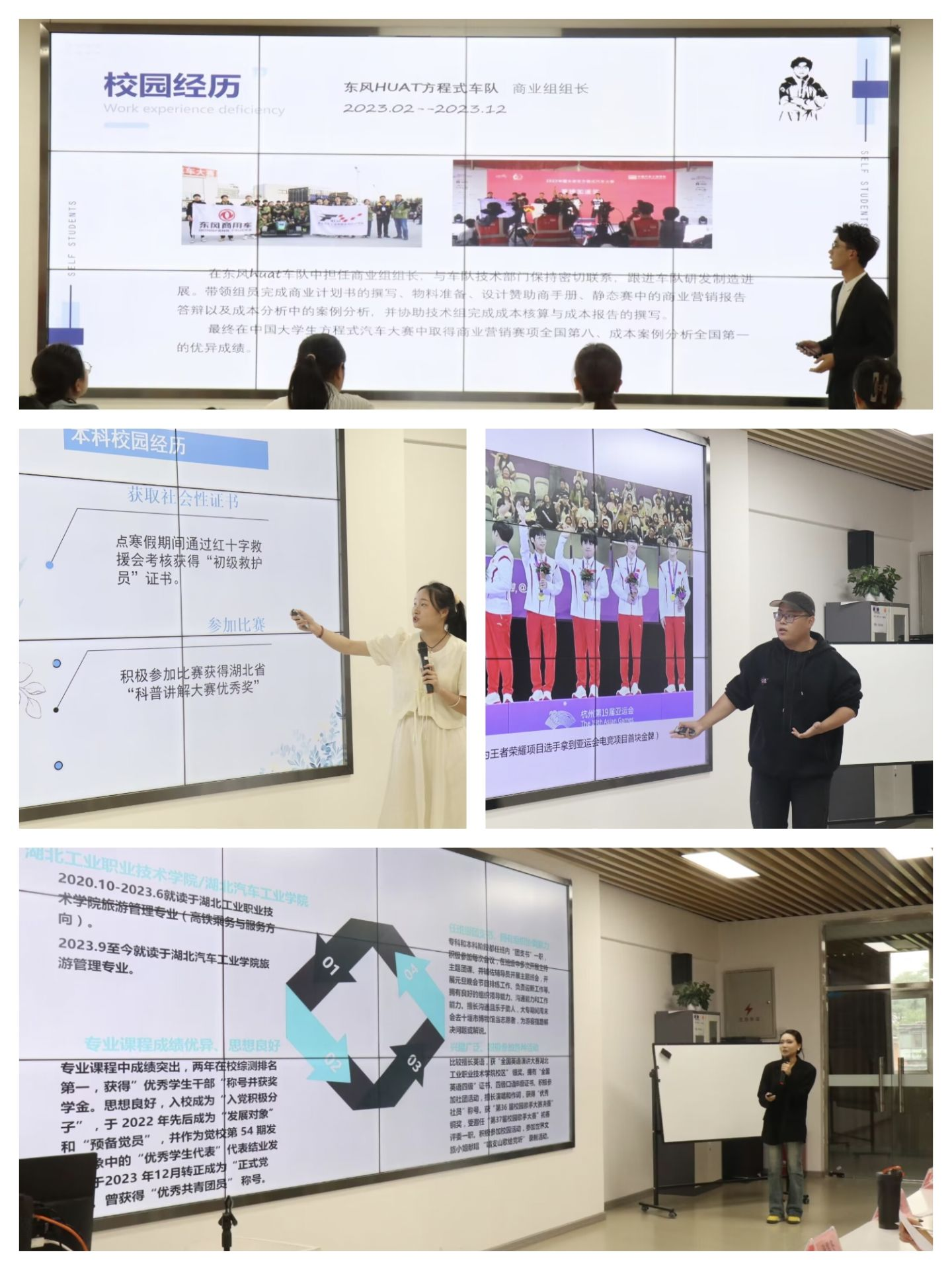 最后,周丹对各位选手及其展示内容进行点评,指出了参赛选手在比赛中的闪光点和不足之处,并鼓励大家通过实习实践形成目标导向的学习内驱力,推动自身不断追求卓越,为未来求职打下良好基础。