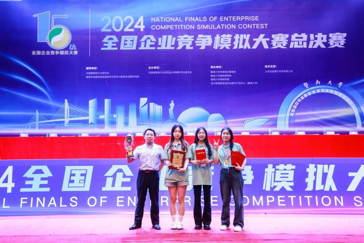 全国企业竞争模拟大赛由中国管理现代化研究会、高等学校国家级实验教学示范中心联席会经管学科组举办,该赛事是我校A类竞赛项目之一。此次大赛于3月初启动,本届全国复赛共计581所高校6632支队伍报名参赛,最终116支队伍晋级全国总决赛现场赛。我校由经济管理学院潘卫华老师和贺景霖老师指导的周万秋,张逸霏,孙美艺团队最终夺得全国一等奖。