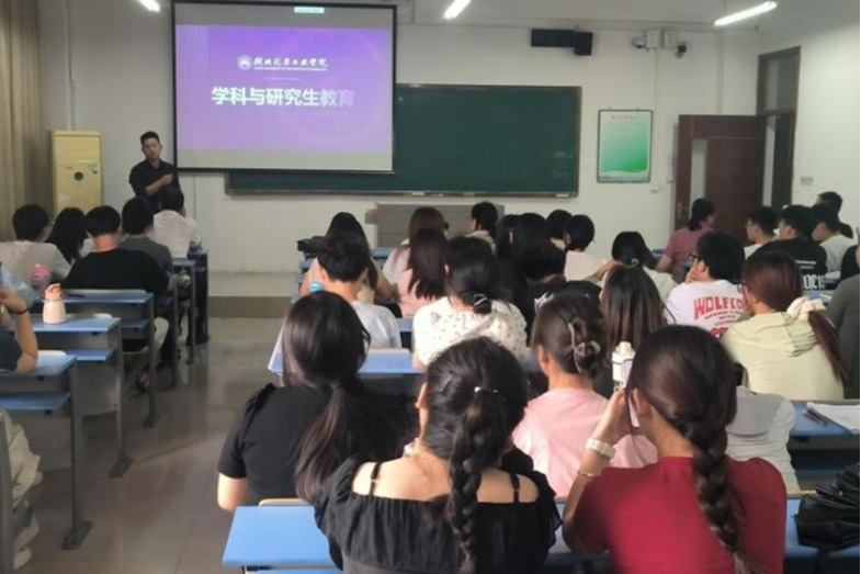 此次研究生招生宣讲主要以宣讲会和座谈会为主,同时与部分同学了展开师生一对一交流。在宣讲会中,胡姜和鄢曹政分别从介绍了我校研究生教育发展现状、特色优势,其中包括学位点人才培养、师资结构、科研成果以及就业前景等方面为目标院校的同学们详细介绍湖北汽车工业学院研究生教育教学及培养等基本情况。孙中义从如何备考、如何应考等方面以亲身经历为同学们分享经验。