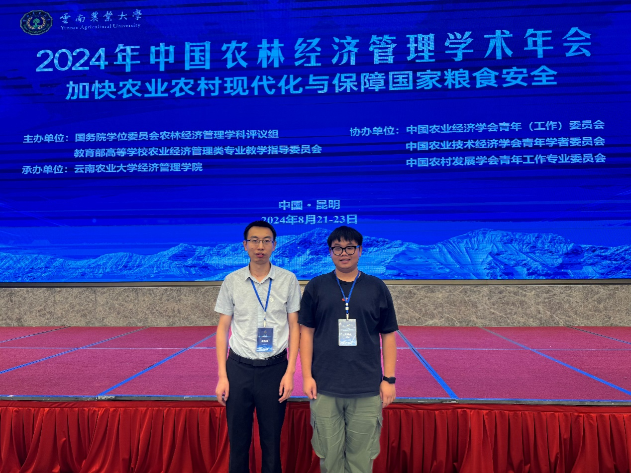 2024年8月21日-23日,以“加快农业农村现代化和保障国家粮食安全”为主题的2024年中国农林经济管理学术年会在云南省昆明市召开。中国农林经济管理学术年会由国务院学位委员会农林经济管理学科评议组、教育部高等学校农业经济管理类专业教学指导委员会主办。我校经济管理学院硕士生导师程文明副教授及其统计学研究生李方圆2人参加本次学术年会,并做研究汇报。
