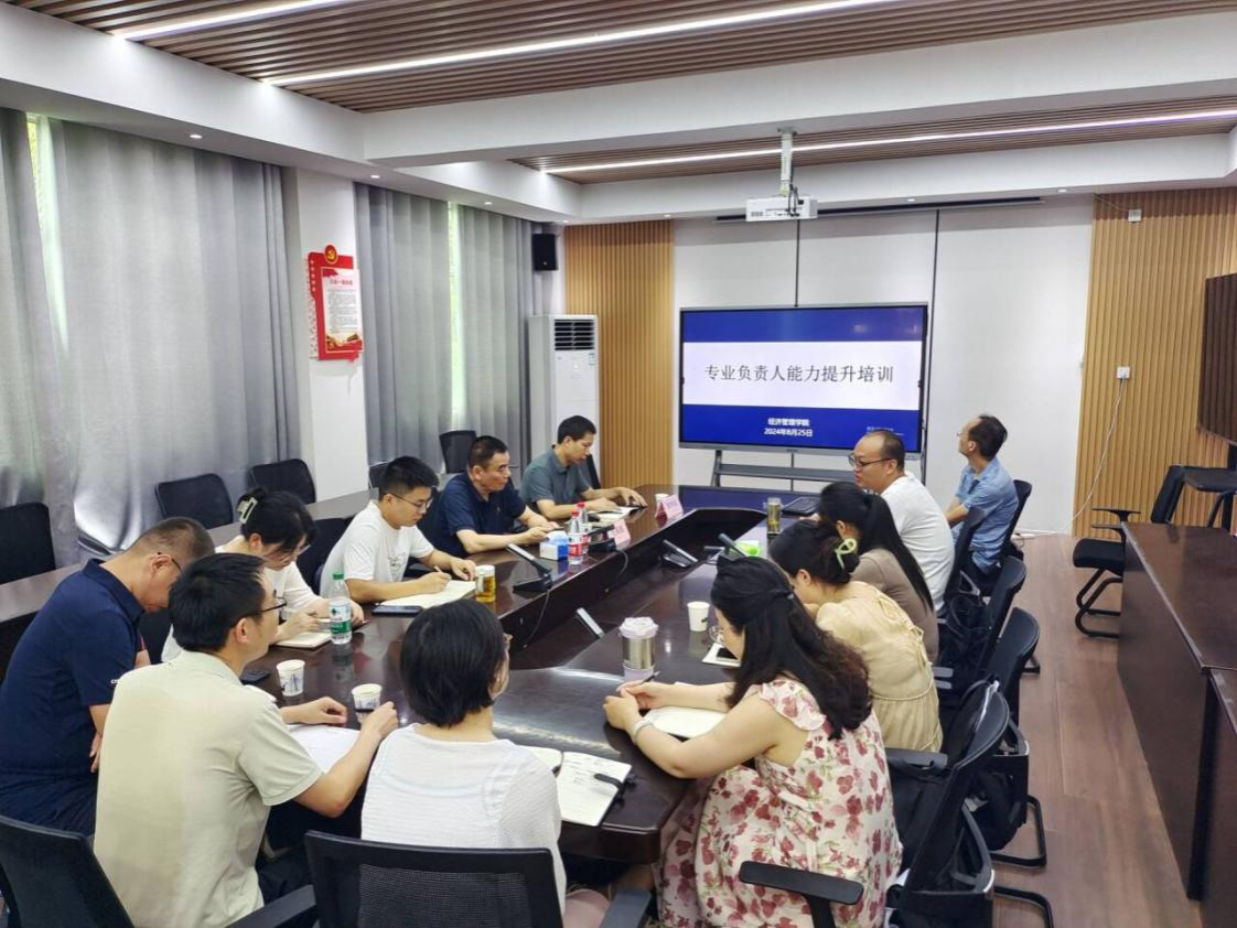 为进一步提高专业负责人的专业建设综合能力,提升专业内涵建设质量,8月25日上午,经济管理学院专业负责人能力提升培训在四教4805室顺利举行。本次培训特邀了学校教学督导组组长毛高波教授,电气与信息工程学院副院长周学良教授做了专题讲座。培训会由经济管理学院副院长鄢曹政主持,各专业负责人、教科办全体人员参加了此次培训。