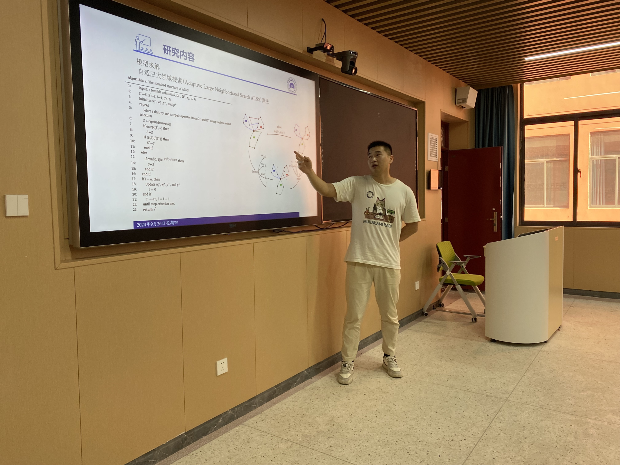 朱瑞雪,经管学院22级研究生,导师为殷旅江教授,报告题目为《考虑充电桩选择的混合车队路径规划问题研究》。碳排放量逐年增加以及交通运输业在所有行业中的碳排放占比常年居高不下,随着“双碳”和相关新能源车辆的补助政策的发布促进电动物流车在运输也的大规模使用。受限于电动车辆续航里程等因素的影响,无法完全取代传统燃油车。油电混合车队配送在现阶段更符合实际情况。通过调节燃油车和电动车在总配送车辆中的占比,优化配送路线和进行合理的充电桩选择。一方面可以降低混合车队在城市物流配送中的总成本,另一方面会提高客户满意度,并减少在配送过程中产生的碳排放;随后介绍了研究假设及研究方法,通过建立模型求解并分析得出相关结论。
