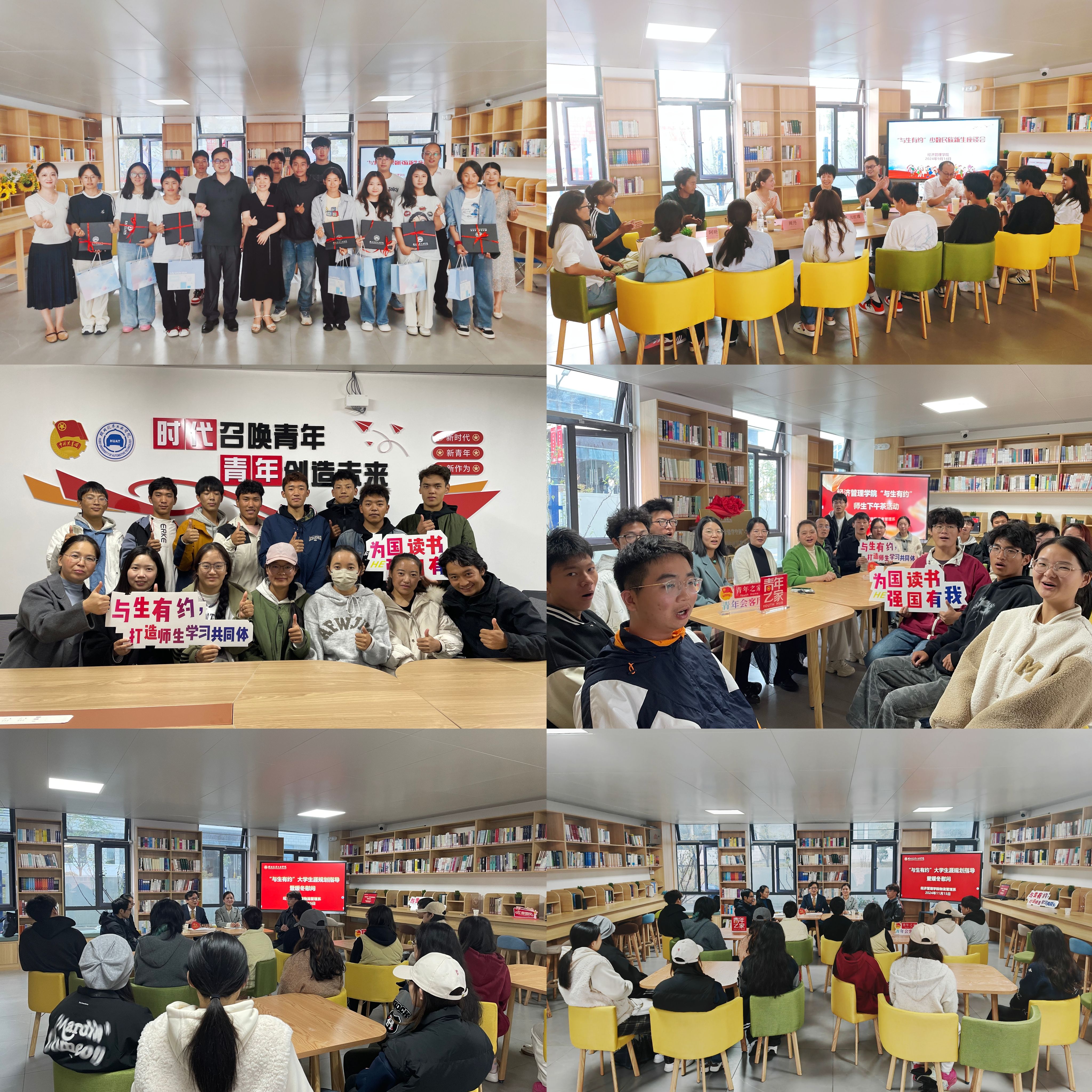为进一步增强入校新生的学习动力,提供科学的生涯规划指导,同时传递学院的关怀与温暖,2024年11月15日上午,经济管理学院在北区一站式学生社区举行“与生有约”大学生涯规划指导暨暖冬慰问活动。学工部部长王关锋、经济管理学院分党委副书记周丹、教工一支部书记王江华、质量管理工程专业负责人贾静、班主任、辅导员以及学生代表参加了活动,活动由学工办主任张倩主持。