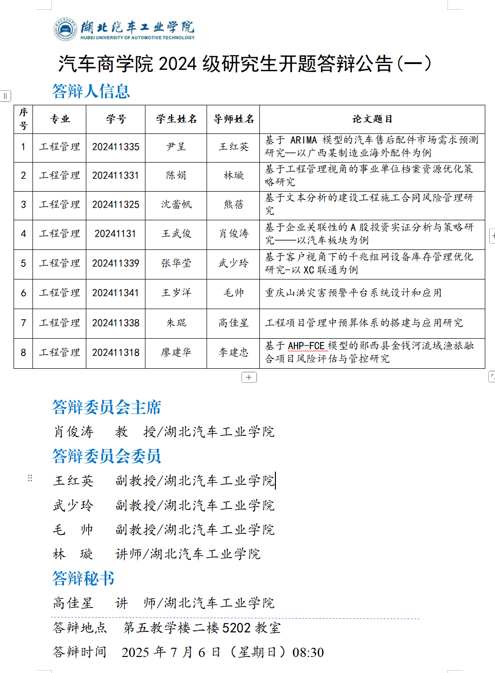 必赢亚州242.,net2024级研究生开题答辩公告