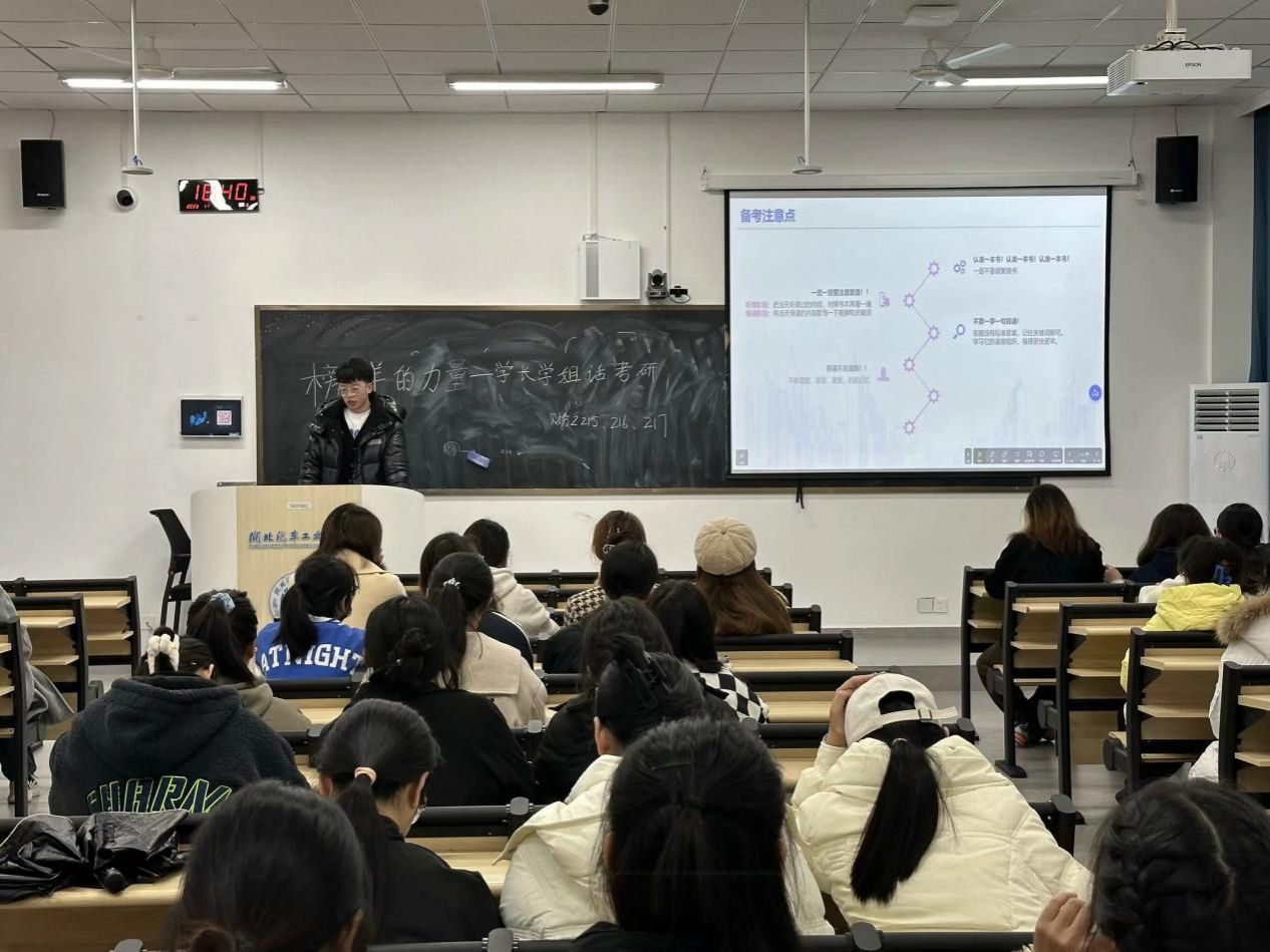 在交流会上,毛禹衡学长重点围绕如何选择院校与专业进行报考开展交流;邓林学姐着重讲述了如何制定相对应的复习计划以及对各个学科进行专项突破学习,并阐述了考研该如何备考;李友元学长分享了个人考研经历以及备考经验与心态,强调考研心态的重要性,并分享了个人的专业课学习方法。学长学姐们给21级学生分析与讲解了近年来考研的趋势,同时阐述了考研注意事项等细节要点,并对现场同学们的疑问进行了解与交流。