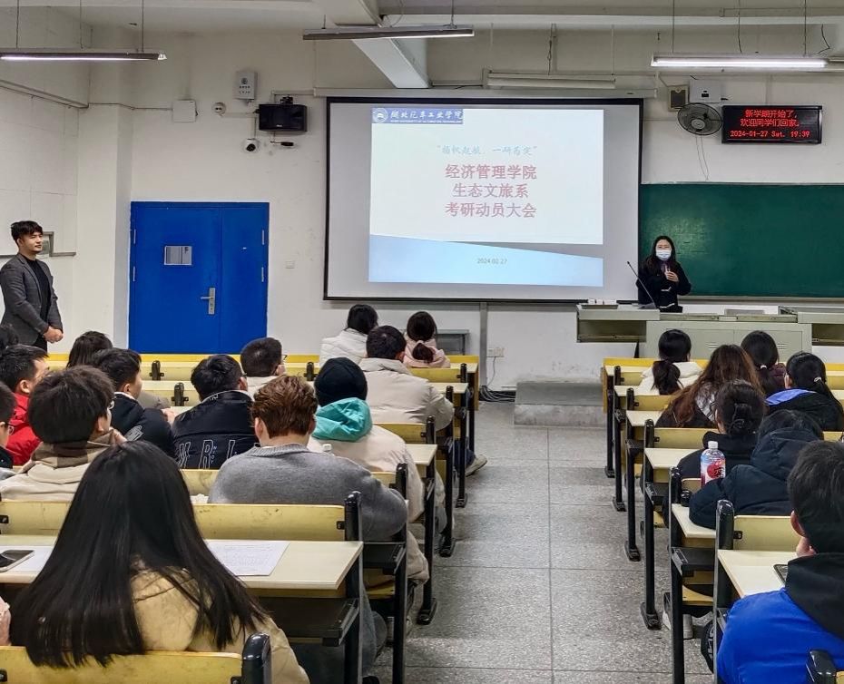 为进一步提高必赢亚州242.,net21级学生的考研积极性,帮助同学们明确考研目标,经济管理学院生态文旅系于2月27日在6311教室成功举办了一场主题为“扬帆起航,一研为定”的考研动员大会,会议由生态文旅系主任汪士为主持。21级旅游管理专业全体学生参加了本次活动。