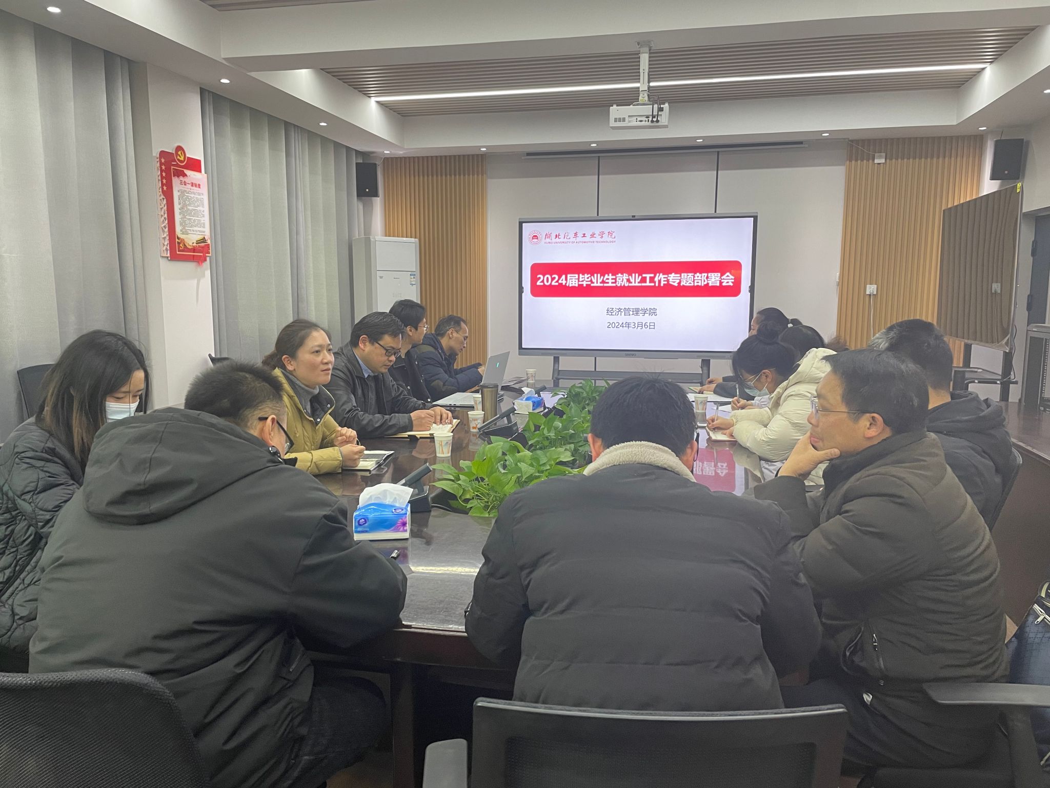 为全力做好2024届毕业生就业工作,帮扶指导考研学生,抢抓春招就业关键期,实现毕业生更充分、更高质量就业,3月6日下午,经济管理学院在4508会议室召开2024届毕业生就业工作专题部署会。会议由分党委副书记周丹主持,分党委书记王礼华、各系副主任、毕业班班主任、学工办主任、就业辅导员参加。
