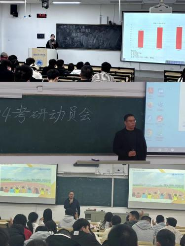会上,各系主任通报了学院近几年考研录取情况,并结合自己多年的教学经验及专业学生发展方向,从考研的意义、备考策略、心态调整等方面给同学们提出具体建议。学院领导为同学们分析了当前国际环境和就业形势,鼓励同学们明确学习目标,努力提升学历层次和综合素质。殷旅江院长从“为什么考研”这个话题切入,表示接受本科教育已然成为当今青年人的标配,想成为社会精英,首先就要具备更高的学历背景。王礼华书记指出考研是实现自我、追求梦想的重要途径,学院致力于在学习条件、人文关怀、备考指导、考研复试等方面为考研学生提供全方位的服务,希望同学们充分利用学院资源,结合自己的兴趣和实力合理选择报考院校和专业,坚定信心,积极备考,努力圆“考研梦”。