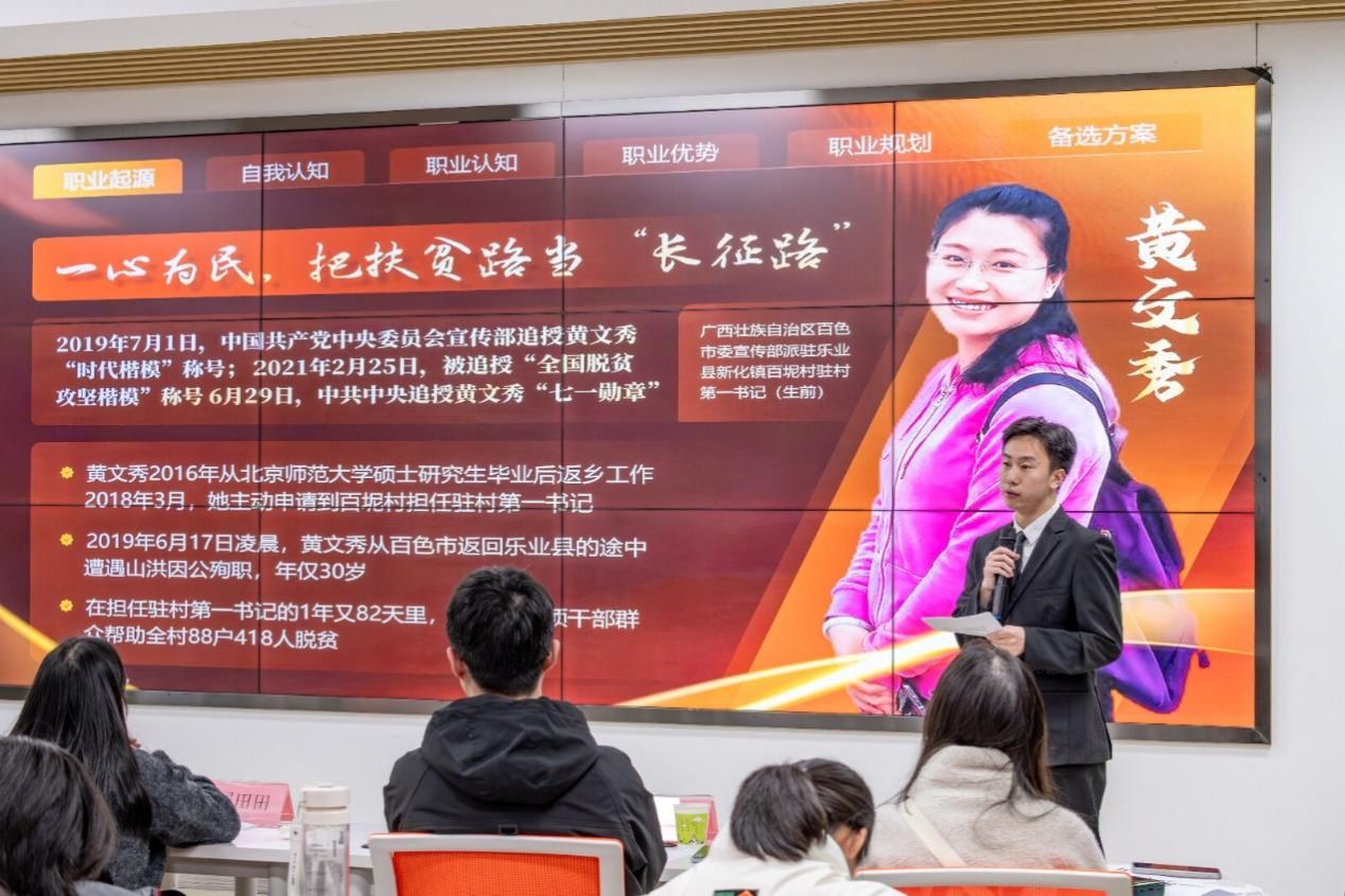 比赛中,选手们通过精彩的 PPT 展示和生动的演讲,向评委和观众们阐述了自己的职业规划目标、发展路径以及实施计划。他们结合自身的兴趣、特长和专业优势,对未来的职业发展进行了深入的思考和规划,展现出了当代大学生的创新思维和积极进取的精神风貌。经过激烈角逐,严文杰荣获比赛特等奖;邢政、王嘉炜获比赛一等奖;罗晶晶、吴绍锋、刘甲垚、刘艺萌同学获比赛二等奖;朱卫芳、黄雨露、王晓露、王倩倩、黄宇轩同学获比赛三等奖。