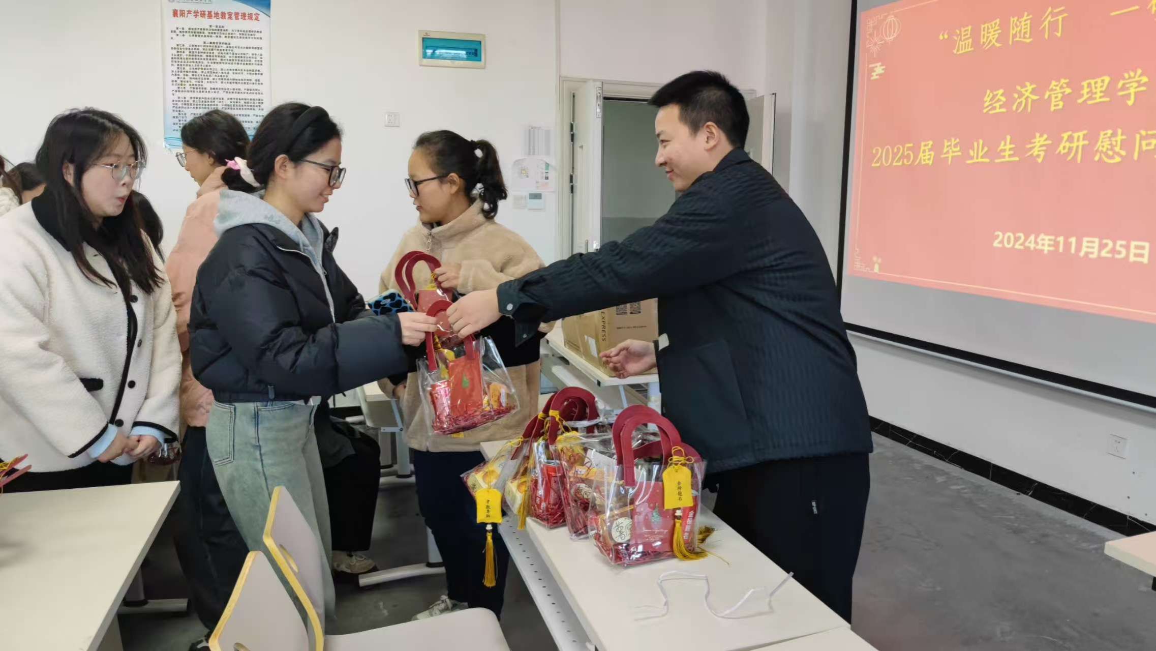 据悉,11月25-26日,经济管理学院辅导员赵氏璇、陈欢、卓安翼,分别去到襄阳和武汉产学研基地看望和慰问经济管理学院考研学子。