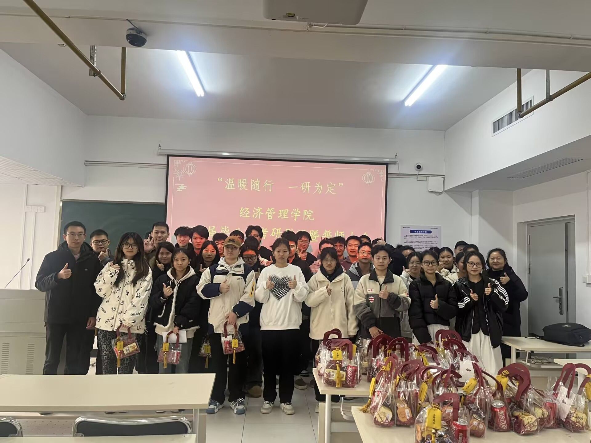 本次考研冲刺动员大会的隆重举行,为备考学子注入了强大的精神动力和坚定支持,显著提升了他们的信心与决心。坚信在学院的悉心关怀与鼎力支持下,经济管理学院的考研学子们必将以优异的成绩,为自己的大学生涯画上一个圆满的句号。