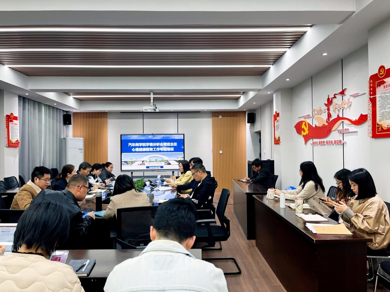会上,辅导员屈田田围绕2025-2026学年第一学期的学生学习情况,进行了系统分析与汇报,通过详实的数据帮助各班主任精准把握班级学情,为后续教育管理提供了清晰依据。罗珍结合当前学院学生工作实际,就安全稳定、学业帮扶、体质健康、毕业服务与日常管理等五方面的工作进行了具体安排。在随后的班主任心理健康教育工作专题培训中,大学生心理健康中心李志鹏老师应邀作了题为《常见学生心理问题的识别与应对》的专题分享,他结合丰富实践经验,深入讲解了学生心理危机的识别信号、师生沟通技巧及初步干预策略,强调了班主任作为“一线守护者”的关键角色。丁小芳老师则针对心理月报的线上填写流程、规范与要求进行了专项培训,确保学院能够动态监测、及时响应学生心理状态。