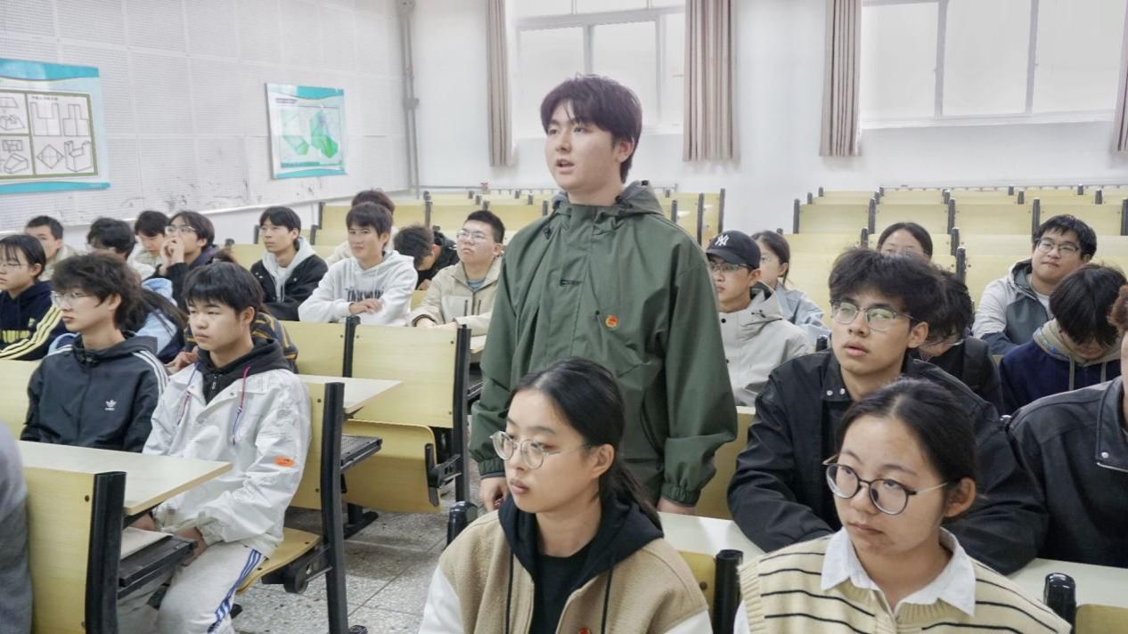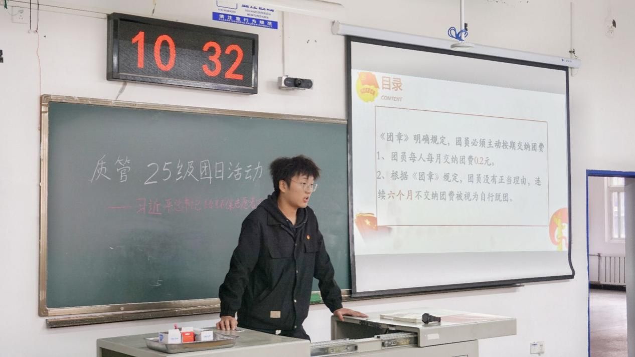 完成入团誓词重温与团章诵读等仪式环节后,全体团员共同观看了环保公益短片《一次》。影片生动呈现了生态保护的丰硕成果,人与自然和谐共生的动人画面徐徐展开,深深触动了在场的每一位青年。在光影交织中,大家切身感受到生态之美,对“守护绿水青山”的理解愈加深刻,主动践行生态保护的行动自觉也在潜移默化中得到强化。在交流分享环节中,各个团员代表结合各自专业背景积极发言,财务231班刘青表示:“绿色发展不仅是国家战略,更应成为我们青年一代的生活态度与职业追求。”这些真挚而有力的发言,不仅展现了新时代青年的思想活力,更将绿色发展理念从理论认知转化为具有专业特色的具体思考,使生态保护的青春担当更加鲜活可感。