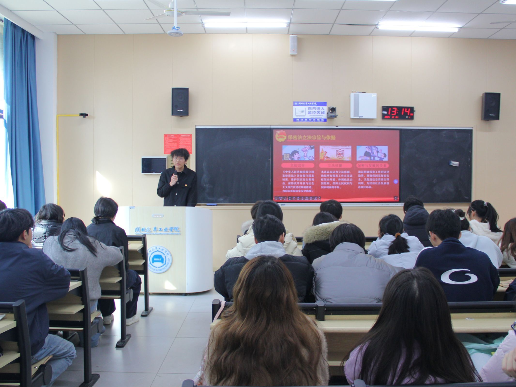 活动在庄严的入团誓词重温中开始。随后,质管241班孔绎霖同学领学了《团章》第二章“团的组织制度”、党的二十届四中全会公报、习近平总书记给天津大学全体师生的重要回信精神,以及习近平生态文明思想。冯洁茹围绕政治安全、经济安全、网络安全等12个国家安全核心领域进行了系统解读,强调政治安全的根本地位与经济安全的基础作用,引导同学们树立“国家安全无小事,人人都是参与者”的自觉观念。在交流研讨环节,同学们围绕“青年如何在日常生活中维护国家安全”展开热烈讨论,积极分享在网络安全、信息保护等方面的实践经验与思考,在互动中进一步深化了对维护国家安全的责任认知。