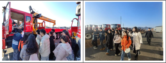 上午饶斌班赴湖北人杰特种汽车有限公司,开展《数字营销赋能专用车产业》课题的短视频素材实地拍摄。现场,公司融主管与小夏老师、周老师先带领同学们参观工厂生产车间与整车停放区,细致讲解特种汽车产品特点,为拍摄提供视角参考;随后针对同学们的脚本策划方案,结合实地场景给出素材选取、镜头运用等专业建议,并全程指导实际拍摄工作,助力同学们高效积累优质素材,为后续视频剪辑输出筑牢基础。